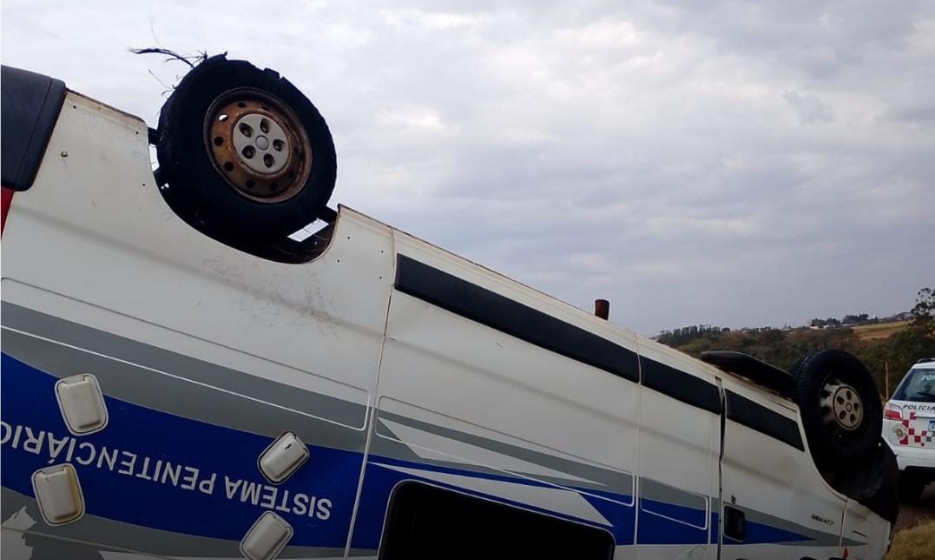 Um pneu traseiro estourado foi o motivo apontado para o capotamento de uma van com 8 presos do sistema penitenciário, ocorrido nesta terça-feira (26), no km 176 da Rodovia Anhanguera (SP 330), em Araras/SP. O motorista e o encarregado tiveram ferimentos leves.